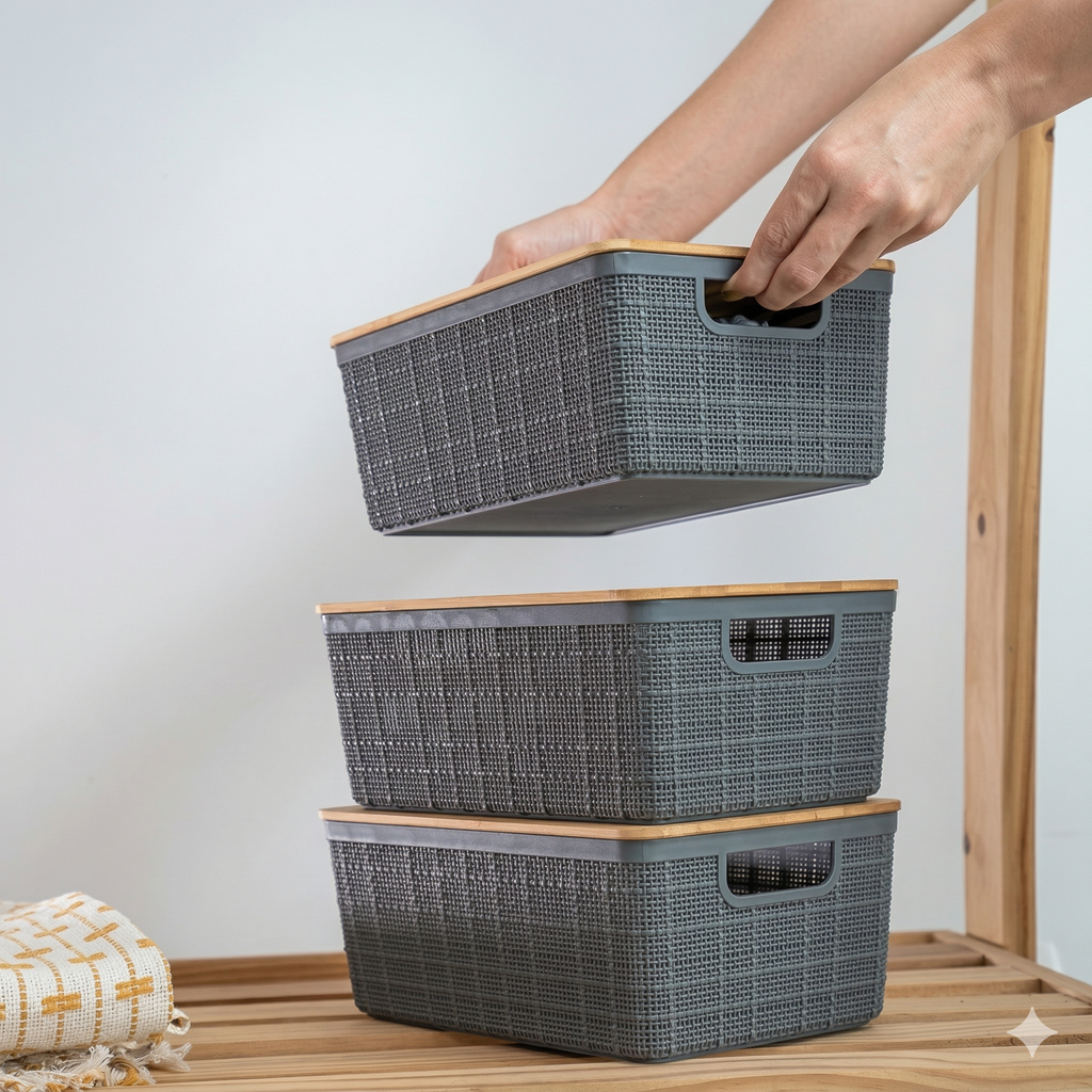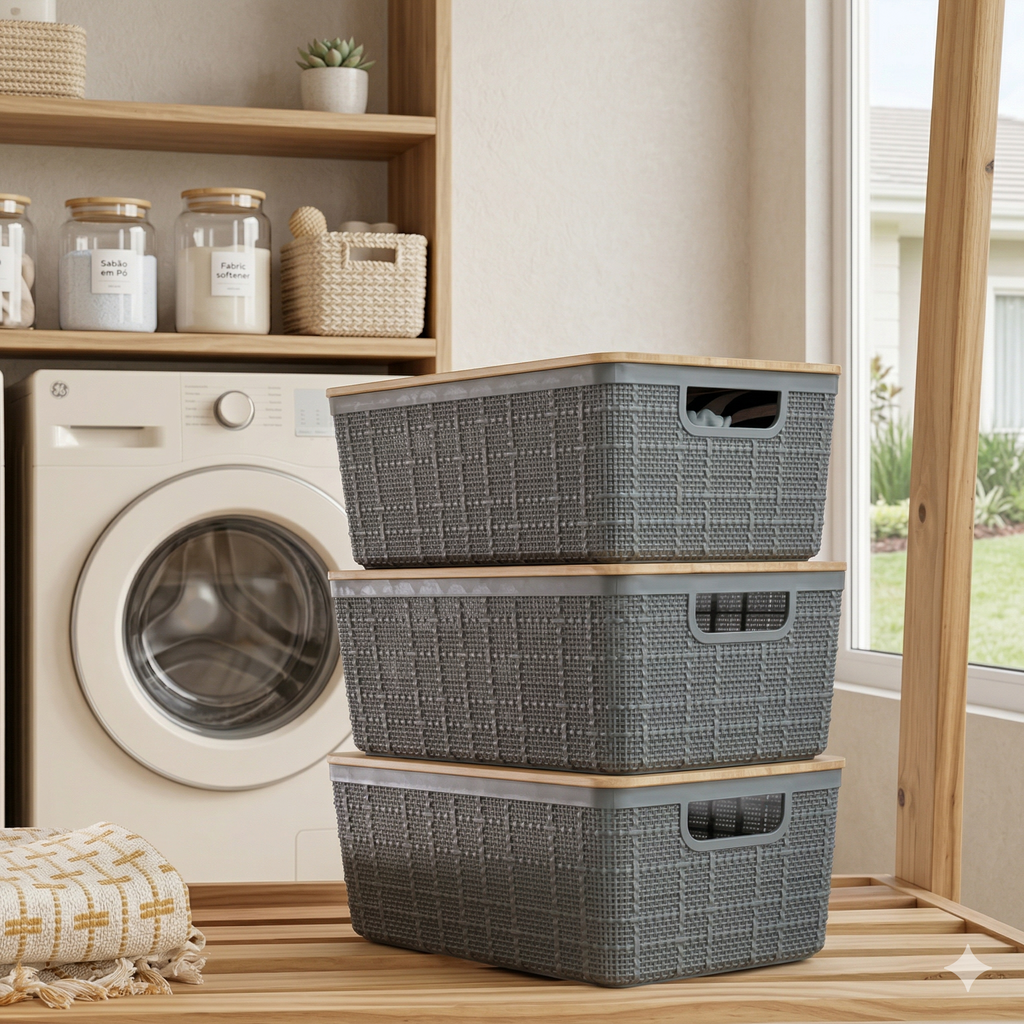 📦 3 caixas organizadoras com tampa de bambu (4L cada)