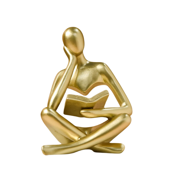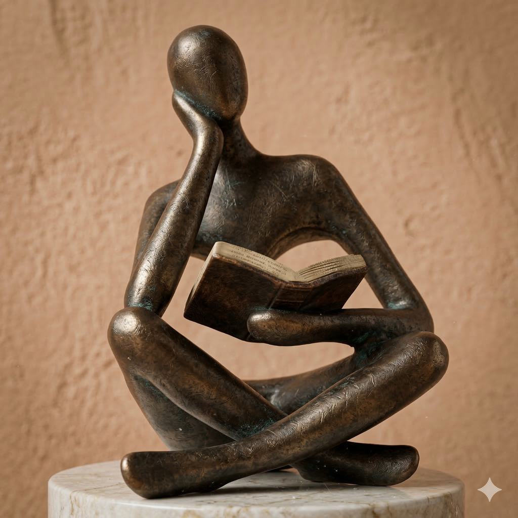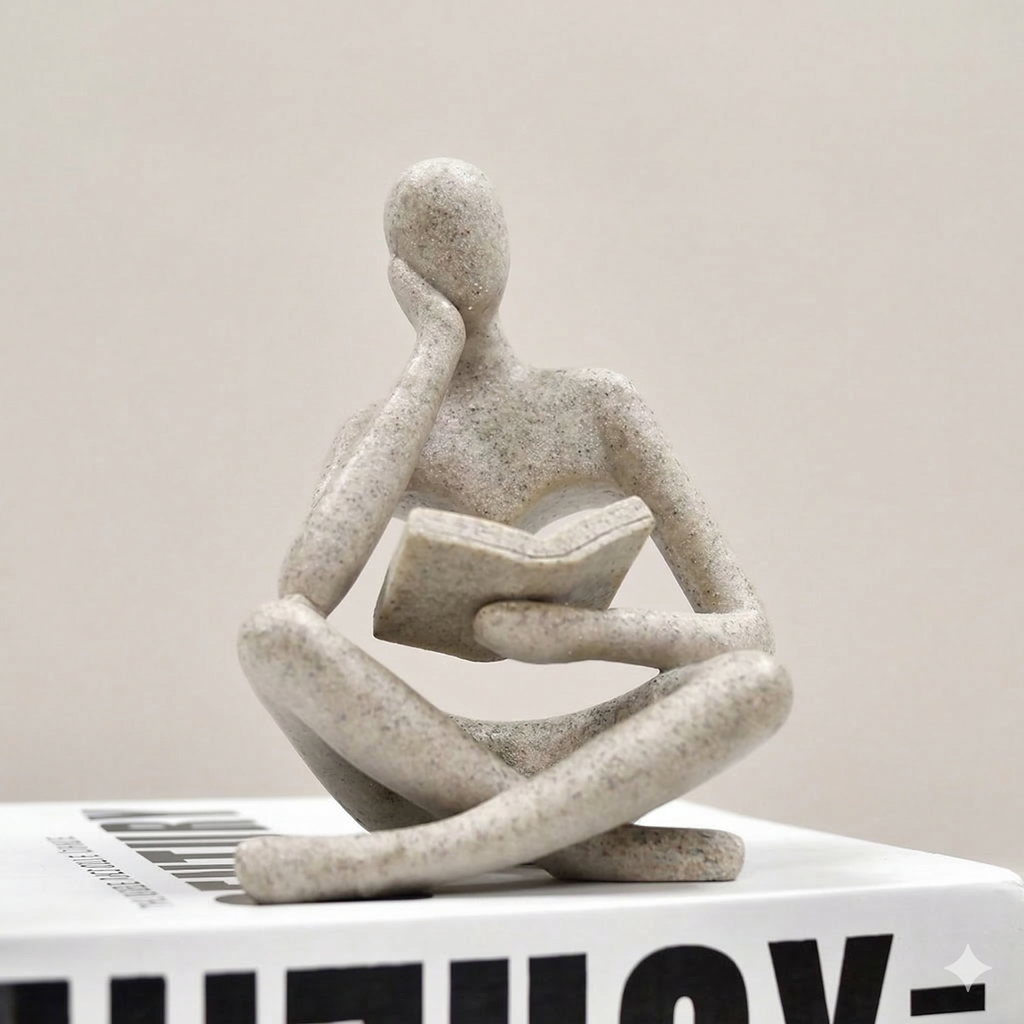 Com design expressivo, a escultura representa a figura de um pensador concentrado em um livro, simbolizando sabedoria, reflexão e aprendizado. Essa peça decorativa é perfeita para compor estantes, mesas de escritório, aparadores ou bibliotecas, criando um ambiente intelectual e acolhedor que valoriza o espaço.