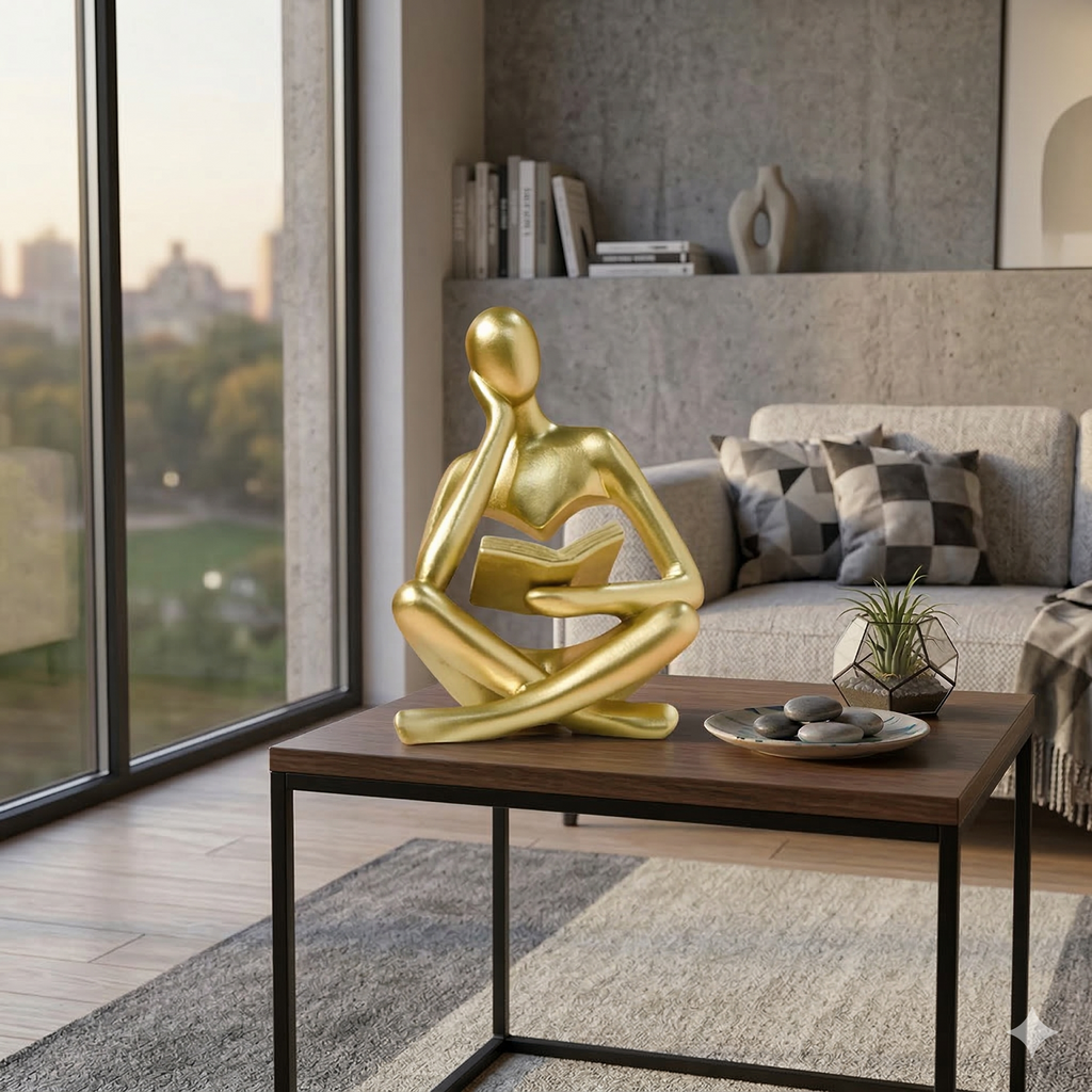 A Escultura Decorativa “Pensador com Livro” é uma peça que transmite elegância, cultura e personalidade ao ambiente. Inspirada na contemplação e no universo do conhecimento, essa escultura traz um toque artístico e sofisticado para salas, escritórios, estantes e ambientes de leitura. Ideal para quem valoriza uma decoração que une estilo, significado e bom gosto.